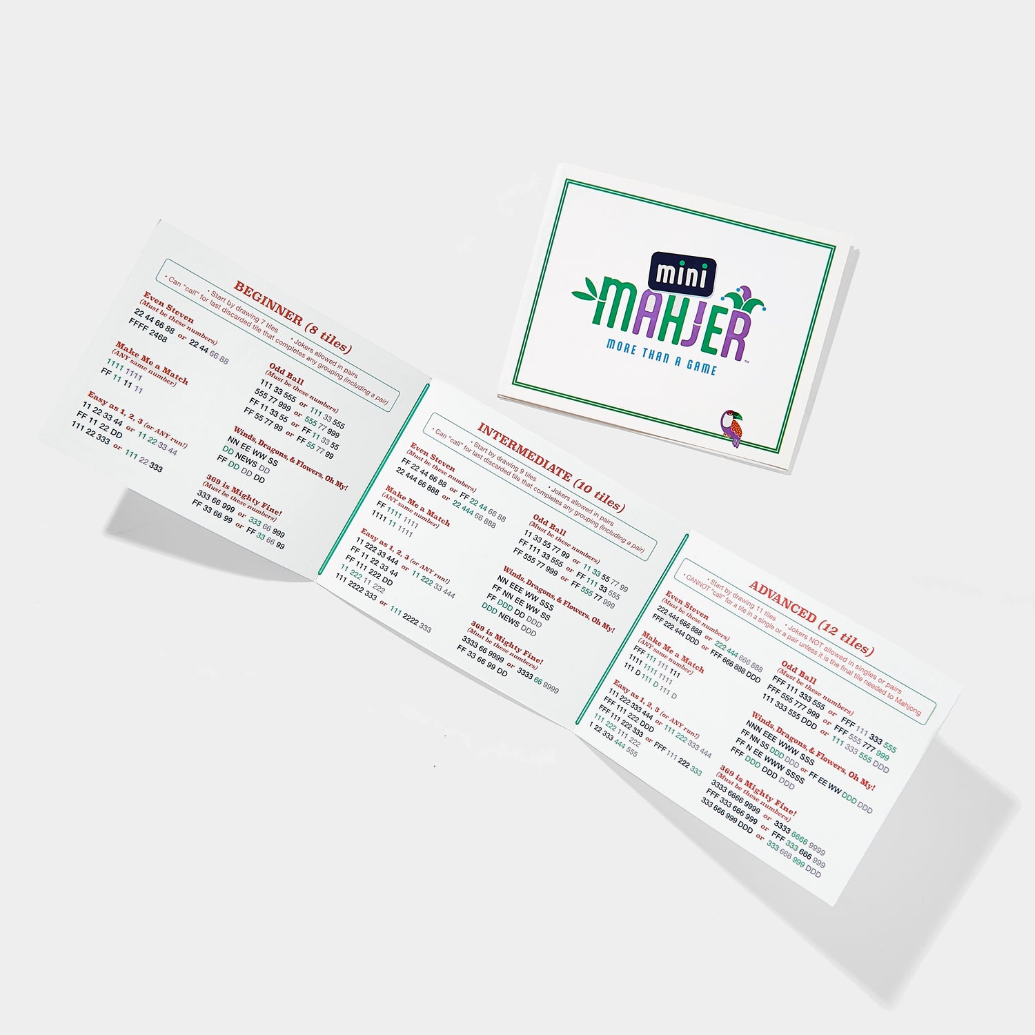 Mini Mahjer is the first board game specifically designed to teach children American Mahjong in a fun and interactive way! Our innovative "Mini Mahjer" combination card features simplified and shortened winning tile combinations tailored for young players. As kids progress through Beginner, Intermediate, and Advanced levels, they can learn and master the game at their own pace. Complete with vibrant, kid-friendly tiles and accessories, plus an easy-to-follow Instructional Guide, Mini Mahjer makes learning Mahjong accessible, exciting, and enjoyable for the whole family!