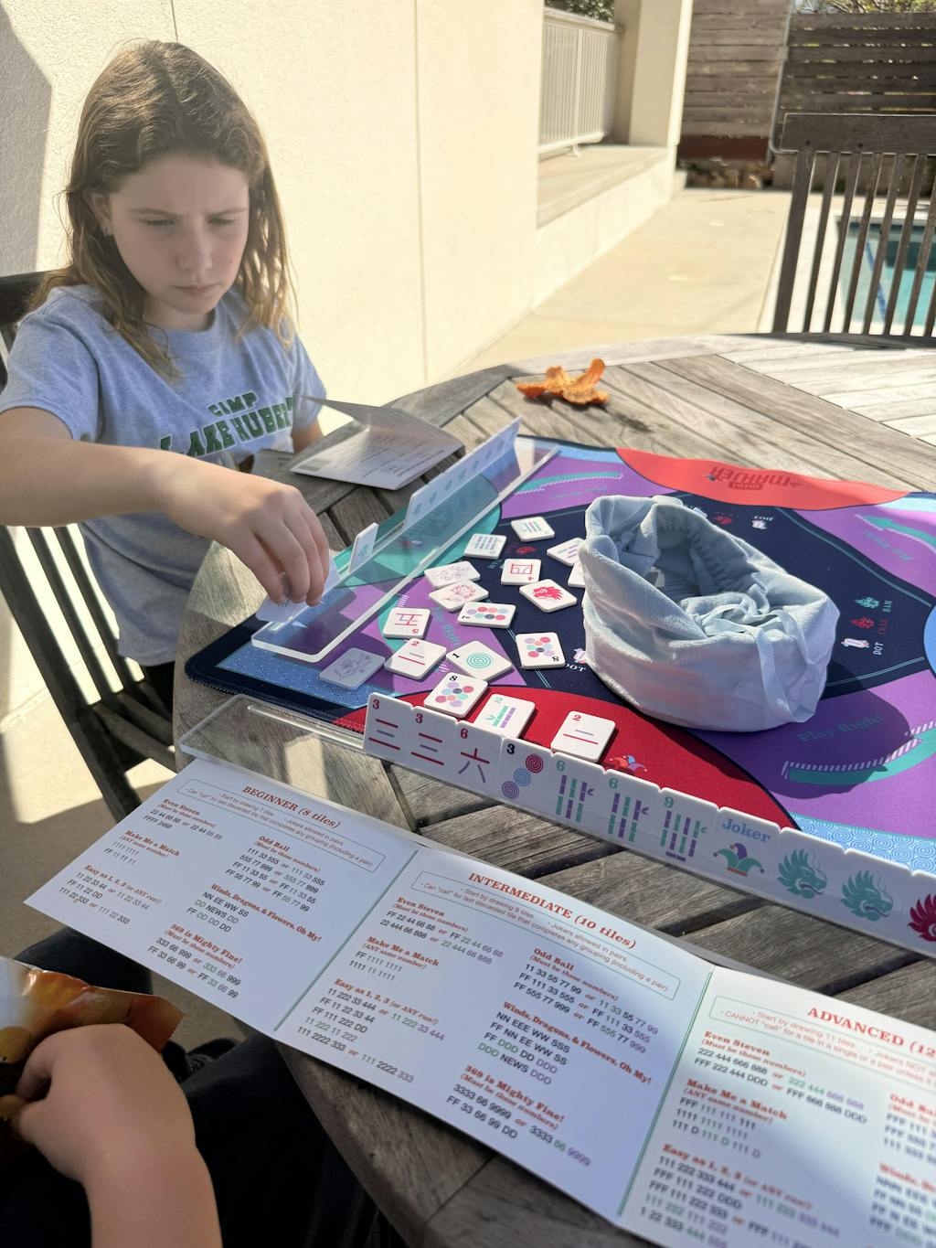 As a new Mahjong player myself, this was the perfect way to have a game set at home. I could teach my girls (ages 9 and7) the basics and get more comfortable myself. It's truly a great way to up your Mahjong skills without spending the money on a full, authentic set.