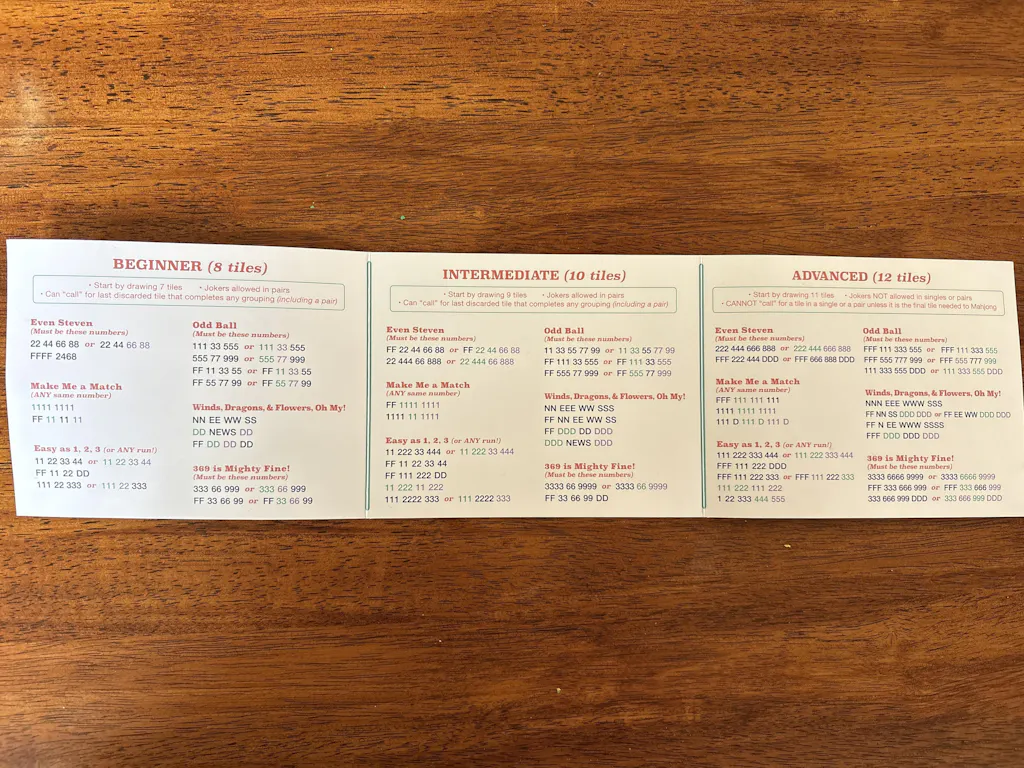My granddaughter is just learning how to play and the mini mahj card has been so helpful!